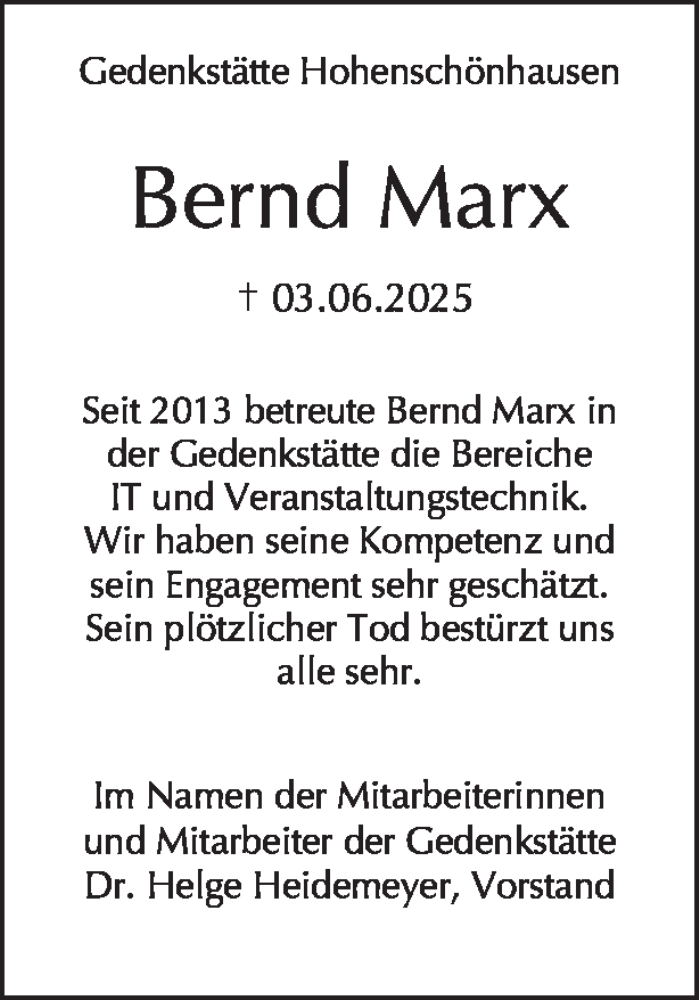 Hier finden Sie alle Traueranzeigen aus der Zeitung, die bisher für Bernd Marx erschienen sind. Weitere Traueranzeigen, die in der Zeitung erscheinen, werden hier ebenfalls aufgelistet