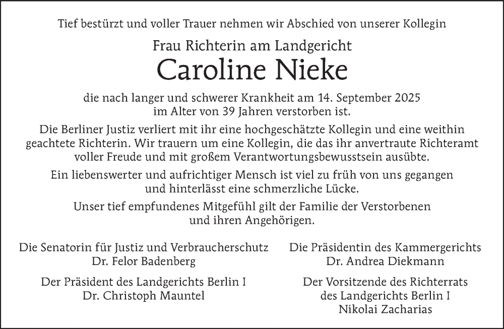 Hier finden Sie alle Traueranzeigen aus der Zeitung, die bisher für Caroline Nieke erschienen sind. Weitere Traueranzeigen, die in der Zeitung erscheinen, werden hier ebenfalls aufgelistet