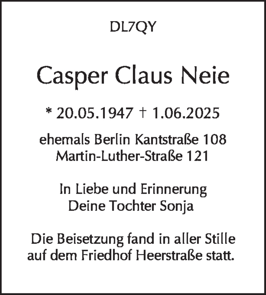 Hier finden Sie alle Traueranzeigen aus der Zeitung, die bisher für Casper Neie erschienen sind. Weitere Traueranzeigen, die in der Zeitung erscheinen, werden hier ebenfalls aufgelistet