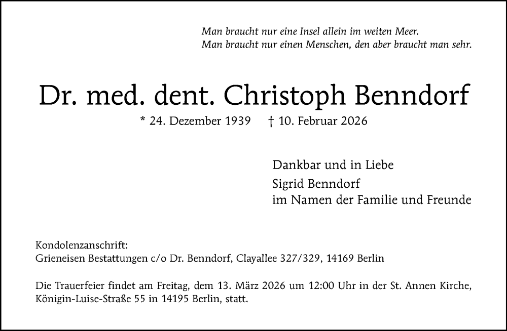 Hier finden Sie alle Traueranzeigen aus der Zeitung, die bisher für Christoph Benndorf erschienen sind. Weitere Traueranzeigen, die in der Zeitung erscheinen, werden hier ebenfalls aufgelistet