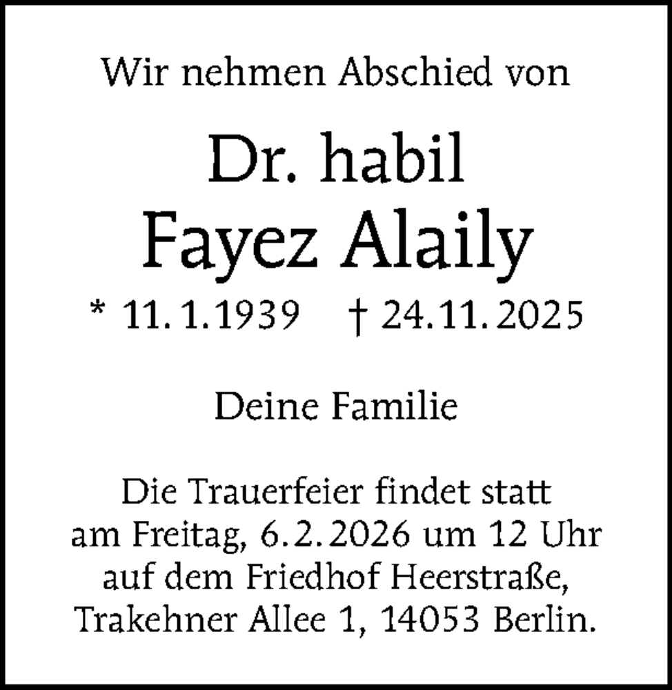 Hier finden Sie alle Traueranzeigen aus der Zeitung, die bisher für Fayez Alaily erschienen sind. Weitere Traueranzeigen, die in der Zeitung erscheinen, werden hier ebenfalls aufgelistet