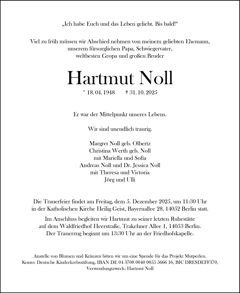Hier finden Sie alle Traueranzeigen aus der Zeitung, die bisher für Hartmut Noll erschienen sind. Weitere Traueranzeigen, die in der Zeitung erscheinen, werden hier ebenfalls aufgelistet