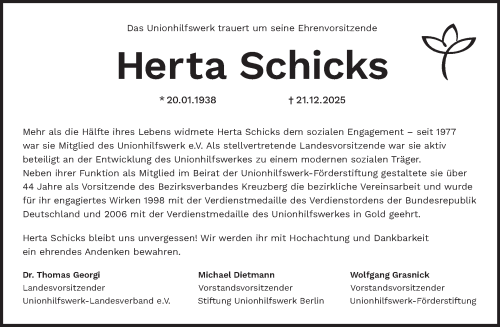 Hier finden Sie alle Traueranzeigen aus der Zeitung, die bisher für Herta Schicks erschienen sind. Weitere Traueranzeigen, die in der Zeitung erscheinen, werden hier ebenfalls aufgelistet