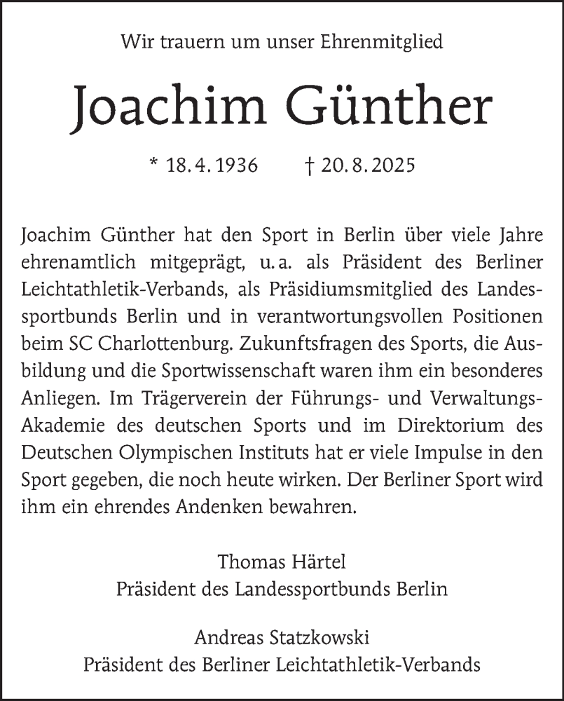 Hier finden Sie alle Traueranzeigen aus der Zeitung, die bisher für Joachim Günther erschienen sind. Weitere Traueranzeigen, die in der Zeitung erscheinen, werden hier ebenfalls aufgelistet