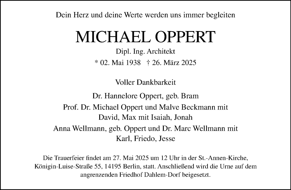 Hier finden Sie alle Traueranzeigen aus der Zeitung, die bisher für Michael Oppert erschienen sind. Weitere Traueranzeigen, die in der Zeitung erscheinen, werden hier ebenfalls aufgelistet