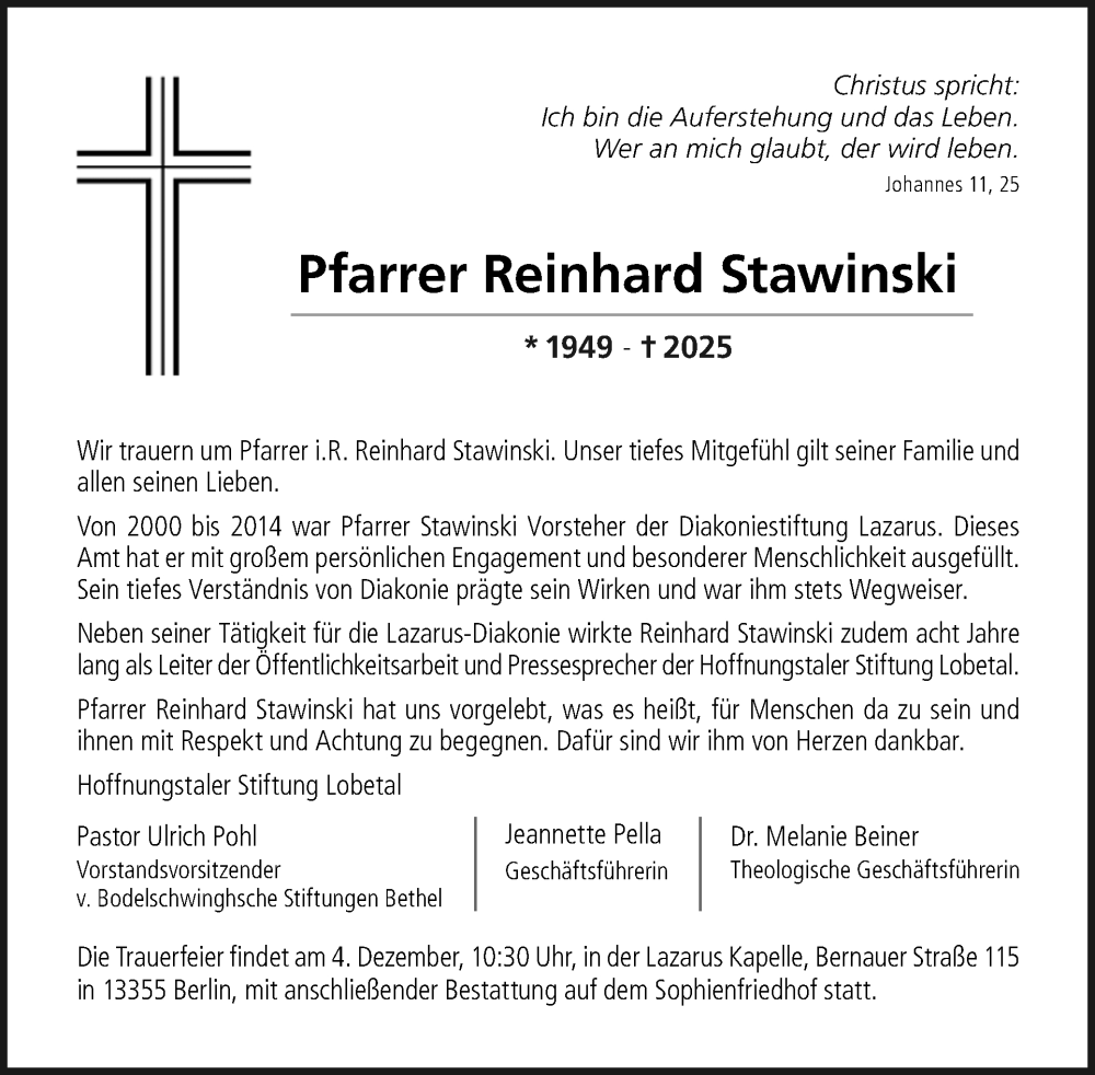 Hier finden Sie alle Traueranzeigen aus der Zeitung, die bisher für Reinhard Stawinski erschienen sind. Weitere Traueranzeigen, die in der Zeitung erscheinen, werden hier ebenfalls aufgelistet