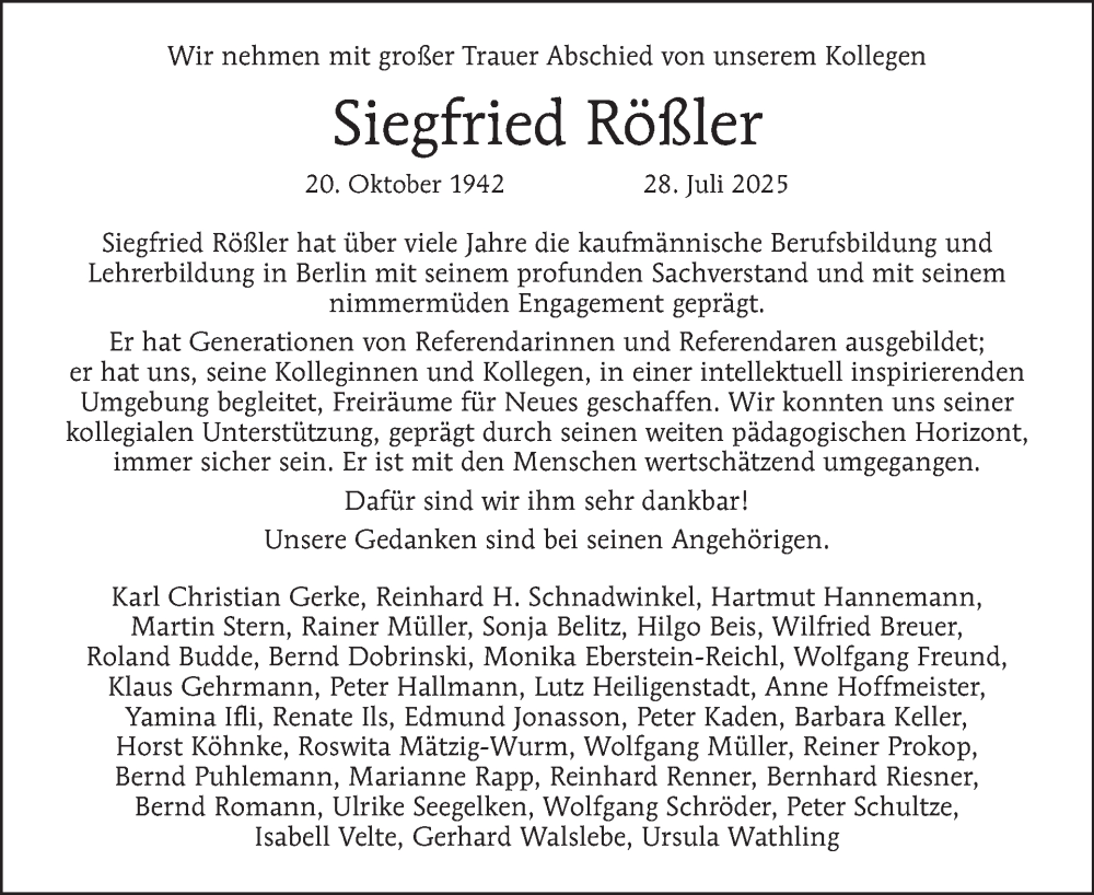 Hier finden Sie alle Traueranzeigen aus der Zeitung, die bisher für Siegfried Rößler erschienen sind. Weitere Traueranzeigen, die in der Zeitung erscheinen, werden hier ebenfalls aufgelistet