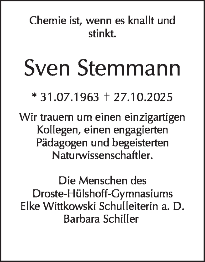 Hier finden Sie alle Traueranzeigen aus der Zeitung, die bisher für Sven Stemmann erschienen sind. Weitere Traueranzeigen, die in der Zeitung erscheinen, werden hier ebenfalls aufgelistet