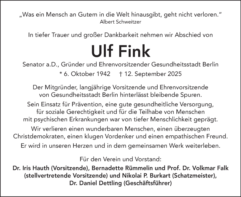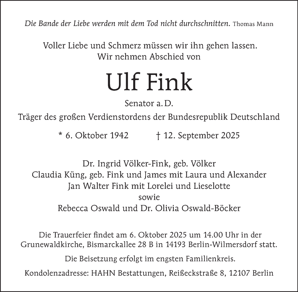 Hier finden Sie alle Traueranzeigen aus der Zeitung, die bisher für Ulf Fink erschienen sind. Weitere Traueranzeigen, die in der Zeitung erscheinen, werden hier ebenfalls aufgelistet