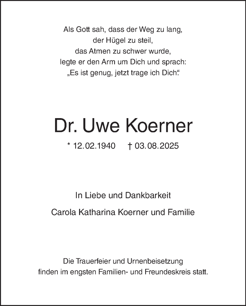 Hier finden Sie alle Traueranzeigen aus der Zeitung, die bisher für Uwe Koerner erschienen sind. Weitere Traueranzeigen, die in der Zeitung erscheinen, werden hier ebenfalls aufgelistet