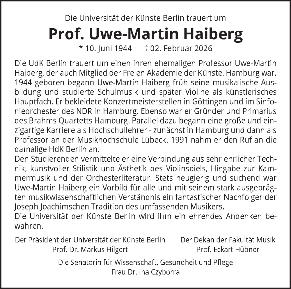 Hier finden Sie alle Traueranzeigen aus der Zeitung, die bisher für Uwe-Martin Haiberg erschienen sind. Weitere Traueranzeigen, die in der Zeitung erscheinen, werden hier ebenfalls aufgelistet