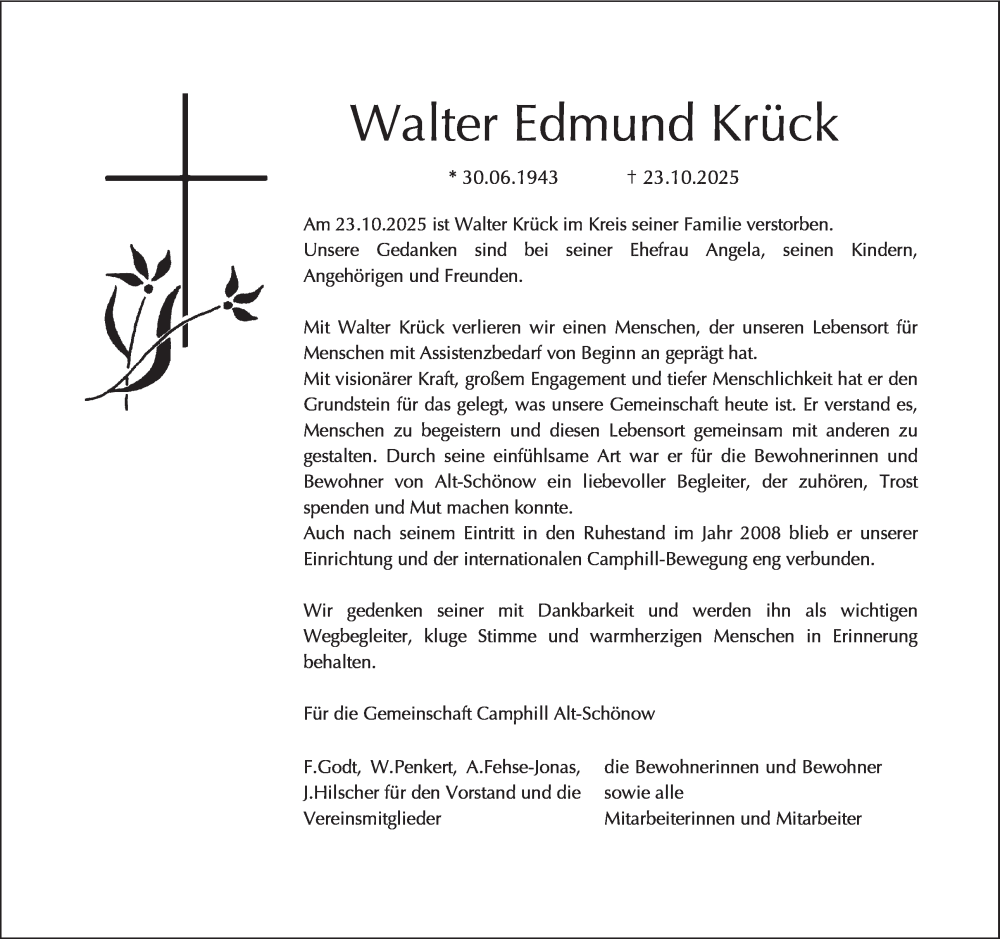 Hier finden Sie alle Traueranzeigen aus der Zeitung, die bisher für Walter Edmund Krück erschienen sind. Weitere Traueranzeigen, die in der Zeitung erscheinen, werden hier ebenfalls aufgelistet